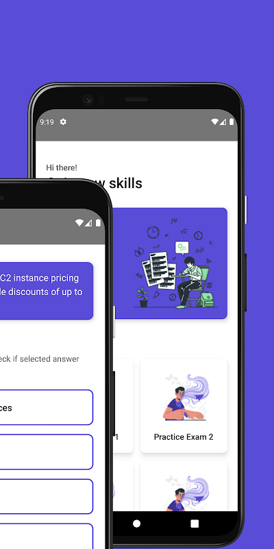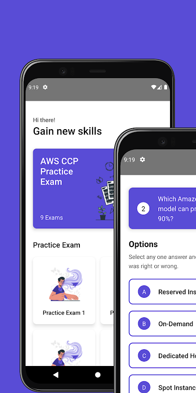 แอป AWS Cloud Practitioner Exam กำลังจัดเตรียมการทดสอบ MCQ เพื่อเตรียมความพร้อม