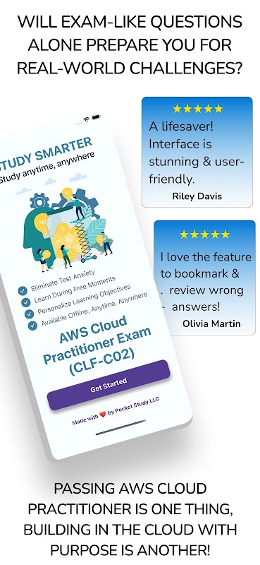 เตรียมตัวอย่างมั่นใจด้วย Pocket Study สำหรับการสอบ AWS Certified Cloud Practitioner (CLF-C02) ซึ่งพัฒนาโดยผู้เชี่ยวชาญด้านคลาวด์และสอดคล้องกับวัตถุประสงค์การสอบ AWS ล่าสุด ด้วยคลังคำถามฝึกฝน AWS Cloud Practitioner ที่ใหญ่ที่สุดแห่งหนึ่ง กว่า 3,900 ข้อที่อัปเดตล่าสุด แอปนี้จึงเหนือกว่าคำถามและคำตอบแบบเดิมๆ แบบฝึกหัดแต่ละข้อประกอบด้วยคำอธิบายโดยละเอียด ช่วยให้คุณเข้าใจพื้นฐานของแนวคิดคลาวด์ บริการ AWS และสถานการณ์จริง ไม่ว่าคุณจะเป็นมือใหม่ด้านคลาวด์คอมพิวติ้งหรือกำลังพัฒนาความรู้ AWS Pocket Study จะช่วยให้คุณเชี่ยวชาญสิ่งสำคัญด้วยคุณภาพระดับมืออาชีพที่ผู้เรียนหลายพันคนไว้วางใจ