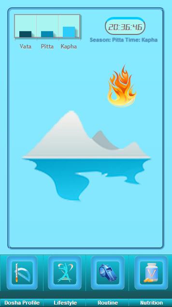 •นาฬิกาอายุรเวทแสดงประเภท Dosha ที่โดดเด่นในลักษณะที่มีความเคารพต่อทั้งเวลาท้องถิ่นของผู้ใช้ในปัจจุบันและฤดูกาลของปี