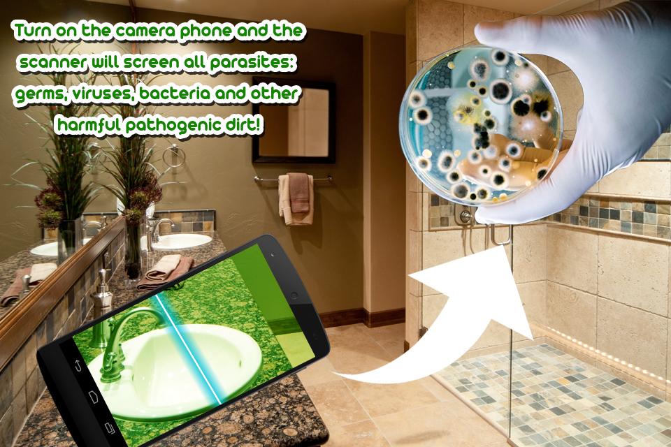 NOTE! The bacteria scanner simulator is for entertainment purposes only, and does not actually scan. That would be impossible. Your phone screen does not have that capability.