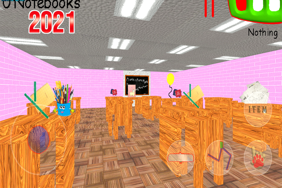 • Story mode requires you to collect 7 notebooks and then escape the school to win. The more notebooks you collect, the faster Baldi will become! Simple, but very challenging.