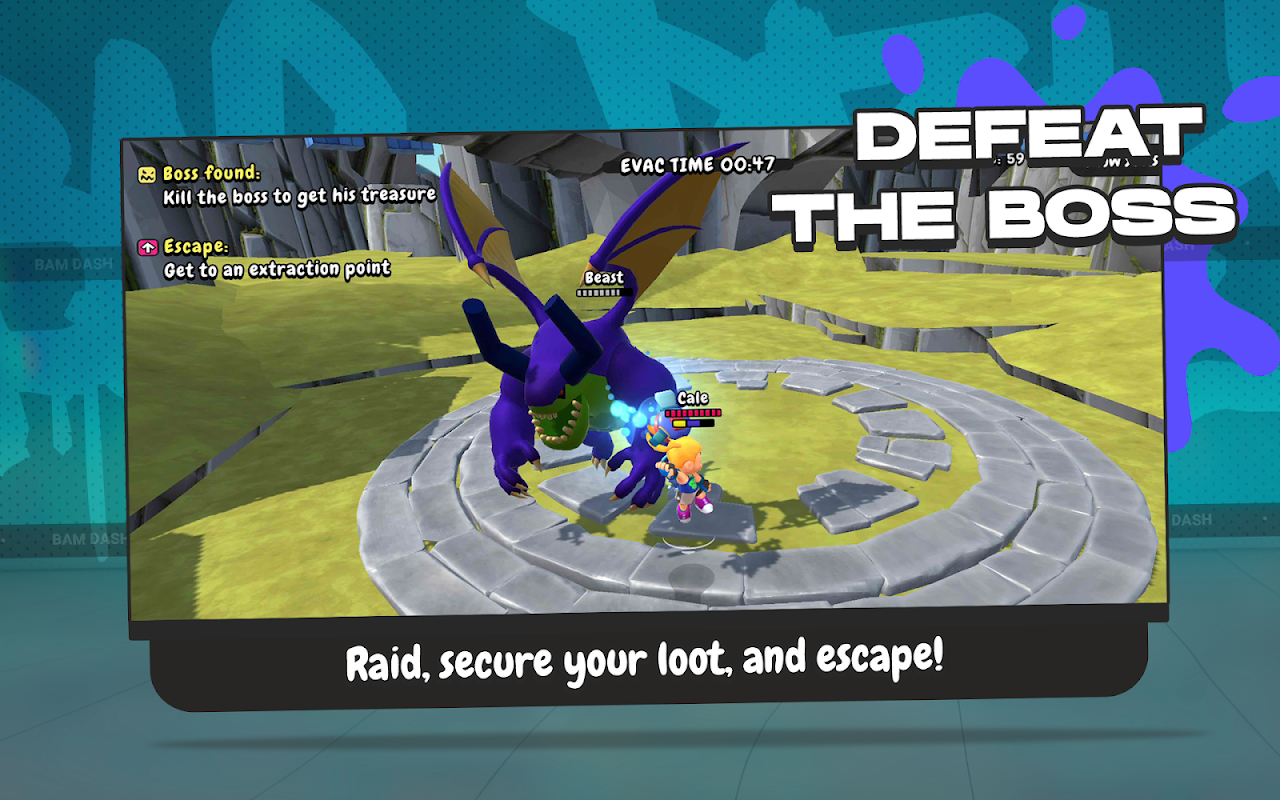 Bam Dash เป็นเกมแยกผู้เล่นหลายคนบนมือถือที่มีกลไกการยิงที่เข้าถึงได้ง่าย เล่นเกมยิงมุมมองบุคคลที่ 3 ที่เต็มไปด้วยความสนุกสนานและแอคชั่นยิงแล้วเคลื่อนที่ที่ลื่นไหล