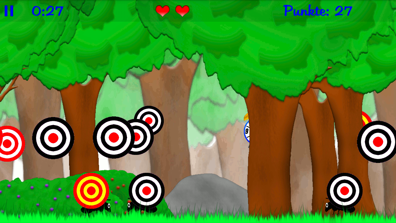 Show your reflexes and face the challenge. Figure out who is the quickest among your friends! Hit every target in the arcade game within the time and compare your highscore with others. Become the ruler of the forest! The beginning seems easy, but how far will you get?