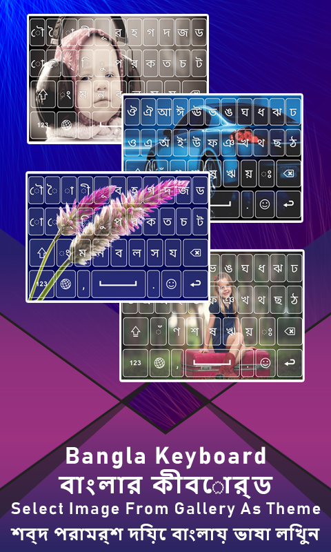 The new Bangla English Keyboard is the new way to use your default mobile keyboard with multiple colors, beautiful backgrounds, emoji keyboard for mobile and much more. This is best keyboard theme that likely compatible with android keyboard and best app to customize keyboard with new look. Download latest colorful theme keyboard with keyboard wallpaper to give change your phone look into a new way.