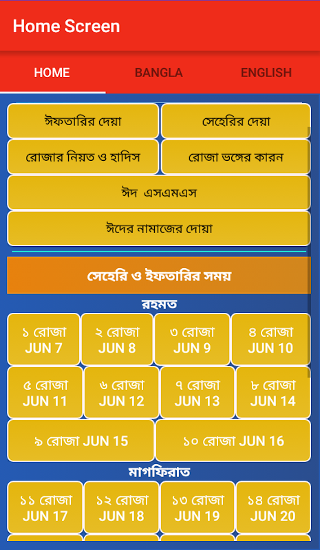 First Page: This is only free apps where you will get Iftarir doa, shaherir doa, ramadan doa, ramadan calender 2017 and also ranna recipe, wallpaper, bus counter number, edul adha and edul fitar cook recipe, cook tips.