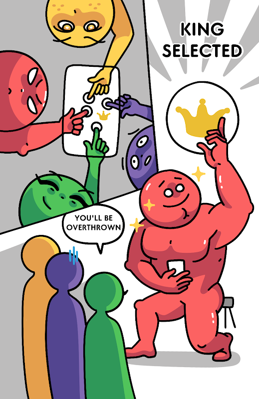 การได้เป็นกษัตริย์จะทำให้คุณมีสิทธิ์ประกาศแบน จึงเป็นการเปิดเวทีสำหรับการต่อสู้ครั้งยิ่งใหญ่ทางจิตใจ เมื่อเวลาผ่านไป วิชาของคุณจะต้องเปิดเผยปริศนาผ่านชุดคำถามอันชาญฉลาด ทดสอบความเฉียบแหลมทางภาษาและการคิดเชิงตรรกะ