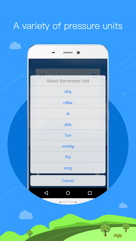 - Choose pressure units: hPa, mbar, mmHg, inHg, psi, atm, etc.