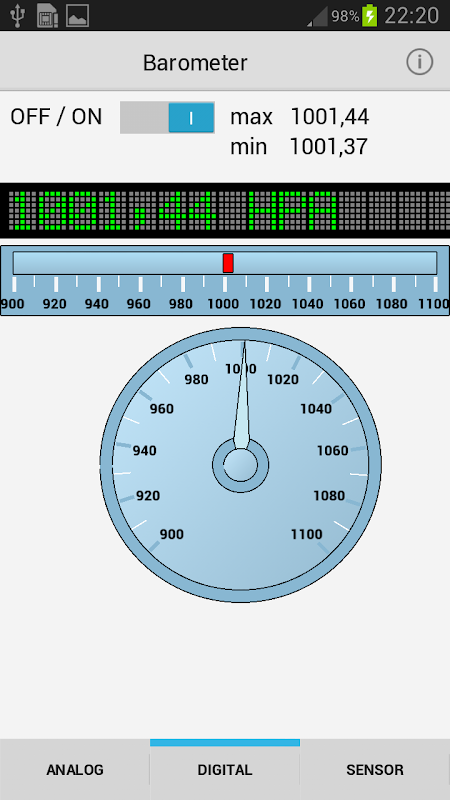 บารอมิเตอร์แสดงความดันอากาศในปัจจุบัน เพื่อจุดประสงค์นี้เซ็นเซอร์ความดันอากาศของโทรศัพท์หรือแท็บเล็ของคุณจะใช้