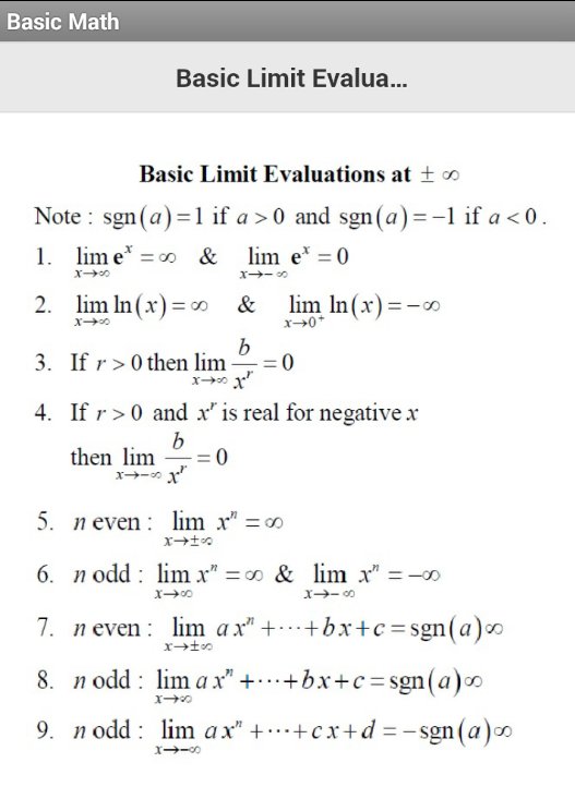 Basic Limit Evaluations Formulas