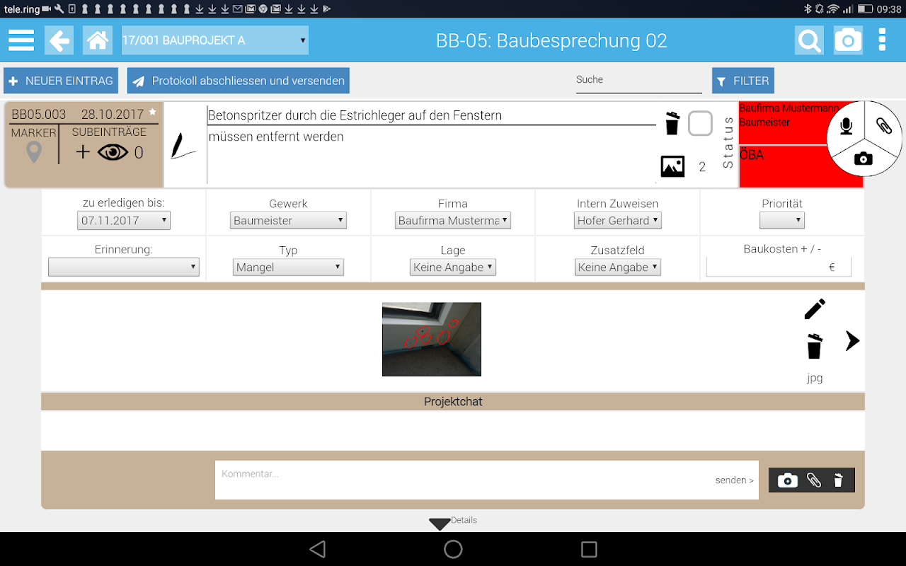 • Sprachaufnahmen, Fotos und Videos direkt im Protokoll erstellen