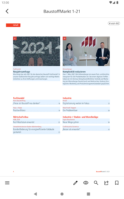 แอปกระดาษอิเล็กทรอนิกส์ BaustoffMarkt สำหรับนิตยสารธุรกิจของอุตสาหกรรมวัสดุก่อสร้าง