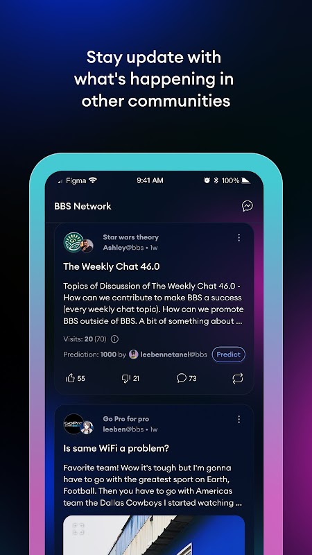 สร้างบัญชีเดียวที่สามารถใช้กับบอร์ดใดก็ได้ในเครือข่าย ติดตามผู้สร้างที่คุณชื่นชอบในบอร์ดต่างๆ เข้าร่วมการสนทนาในชุมชนต่างๆ ที่สร้างขึ้นแล้ว หรือสร้างของคุณเองและตัดสินใจว่าจะจัดการบอร์ดของคุณอย่างไร เจ้าของบอร์ดแต่ละคนจะตัดสินใจนโยบายเนื้อหา การกลั่นกรอง และแม้แต่วิธีการจัดการโฆษณาและรายได้ของพวกเขาสำหรับบอร์ด