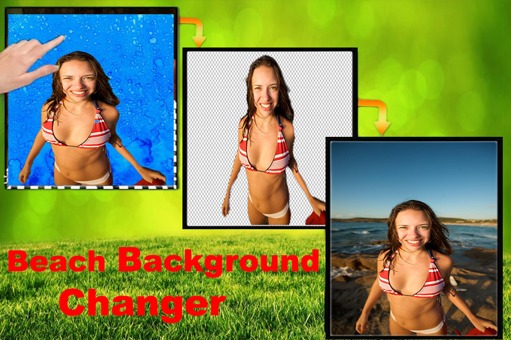 This Apps Is Real Beach Background Changer where you can Erase any parts of your photo and replace it with in built background image or gallery on a beach