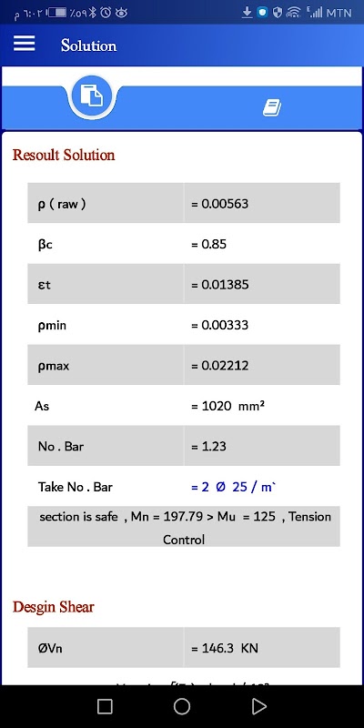 ออกแบบคานส่วนใหญ่ (R-section, T-section, L-section) และสร้างผลลัพธ์ของโซลูชันในรูปแบบของผลลัพธ์สั้น ๆ รวมทั้งแสดงขั้นตอนของโซลูชันที่เหมือนกับโซลูชันแบบแมนนวล
