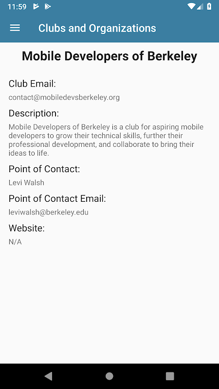 แอปพลิเคชันนี้สร้างขึ้นโดยนักพัฒนามือถือของ Berkeley ซึ่งเป็นองค์กรนักศึกษาและไม่มีส่วนเกี่ยวข้องร่วมสังกัดรับรองหรือโดยวิธีใด ๆ ที่เชื่อมต่อกับ UC Berkeley หรือ บริษัท ในเครือหรือ บริษัท ในเครือใด ๆ ชื่อ "UC Berkeley" รวมทั้งชื่อเครื่องหมายและโลโก้ที่เกี่ยวข้องเป็นเครื่องหมายการค้าจดทะเบียนของ UC Berkeley หรือ Regents of the University of California