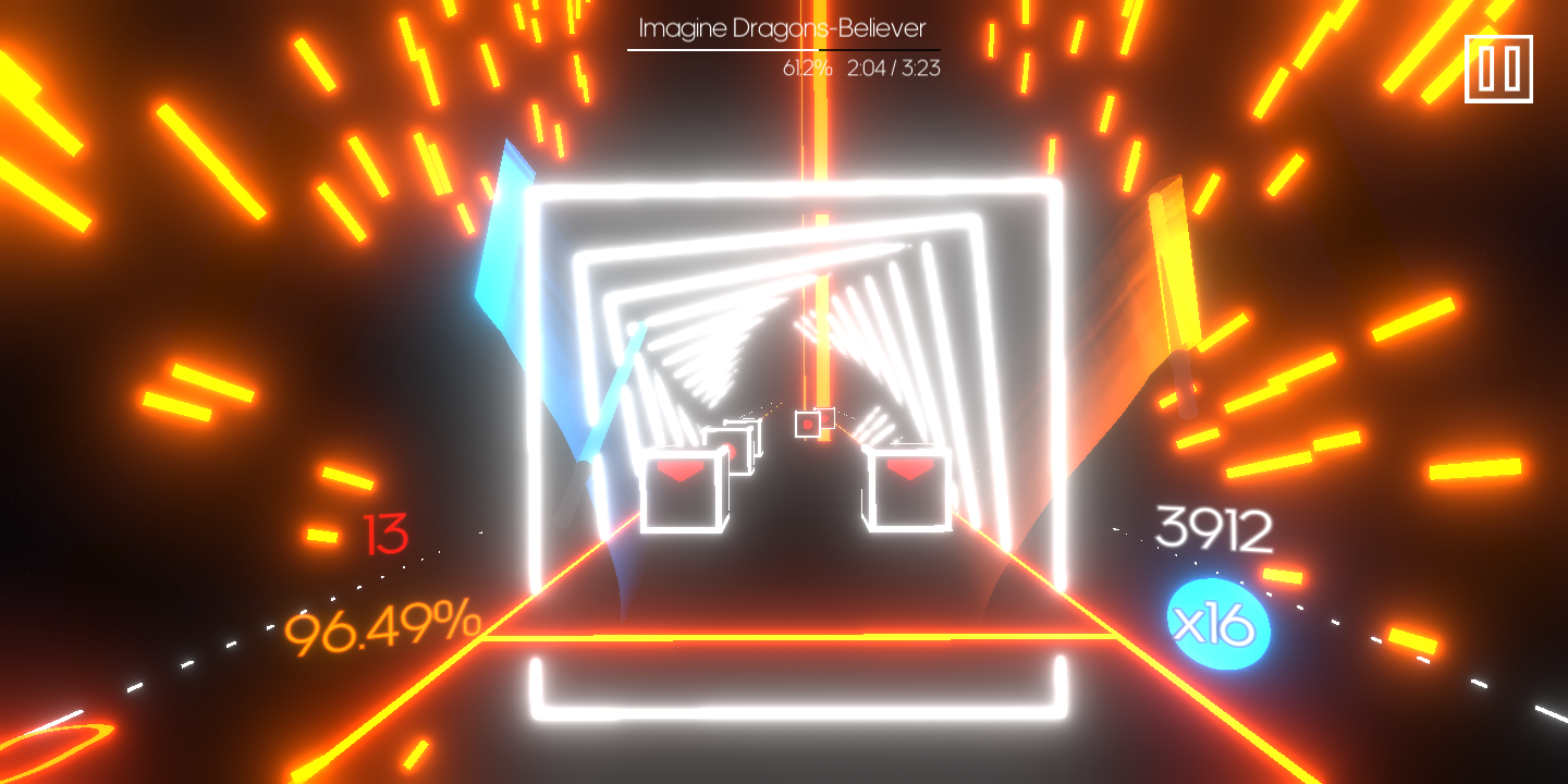 Ваша цель разрезать кубы или линии в такт музыки. Музыку можно выбрать как свою так и приготовленную нами.