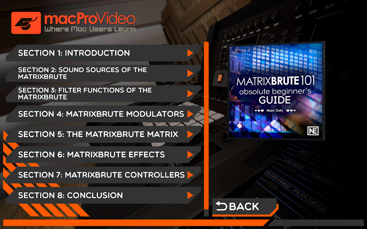 From there, Marc dives into the modulators, revealing everything about the envelopes, LFOs and the infamous Audio Mod (which brings the MatrixBrute into FM territory). Next, Marc shows how easy it is to understand the heart of the synth: the intricate sea of buttons called the Matrix which lets you do everything from loading presets to programming complex sequences and arps. Continuing with the course, you also learn the analog effects, the macro knobs, the voice settings and a lot more.