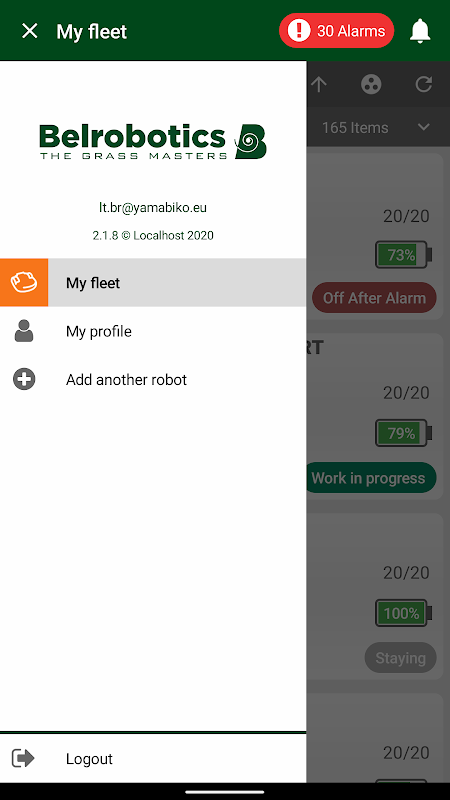 แอพ Belrobotics ให้คุณควบคุมหุ่นยนต์ของคุณได้ทุกที่ ตรวจสอบสถานะสดระดับแบตเตอรี่และประสิทธิภาพของห้าวันที่ผ่านมา รับภาพรวมของกิจกรรมพารามิเตอร์และกำหนดการได้ง่าย ส่งคำสั่งใด ๆ และรับการยืนยันทันที ตรวจสอบตำแหน่ง GPS ของหุ่นยนต์ด้วยตำแหน่งสัญญาณเตือนที่เกี่ยวข้อง ค้นหาจัดเรียงกรองและจัดกลุ่มเพื่อเปรียบเทียบหุ่นยนต์