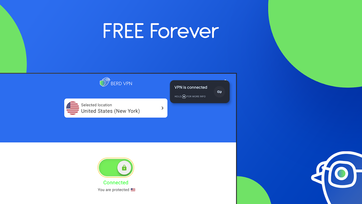 BerdVPN นั้นฟรีสำหรับผู้ใช้ทุกคนและจะยังคงฟรีตลอดไป! ไม่ต้องลงทะเบียนหรือบัตรเครดิต เรามอบฟีเจอร์ VPN ระดับพรีเมียมให้กับคุณโดยไม่มีค่าใช้จ่าย ด้วย BerdVPN คุณจะได้รับข้อมูล VPN ไม่จำกัดฟรี โดยไม่ต้องซื้อแผนพรีเมียมใดๆ ปลดบล็อกการเข้าถึงเนื้อหาที่ถูกบล็อกหรือเซ็นเซอร์ และรับการเข้าถึงอินเทอร์เน็ตไม่จำกัด