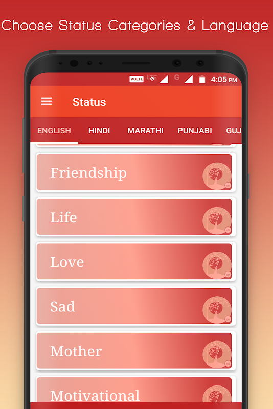 Best ever status categories like Attitude, Love, Rain, Breakup, Cute, Funny, Sad and many more categories.