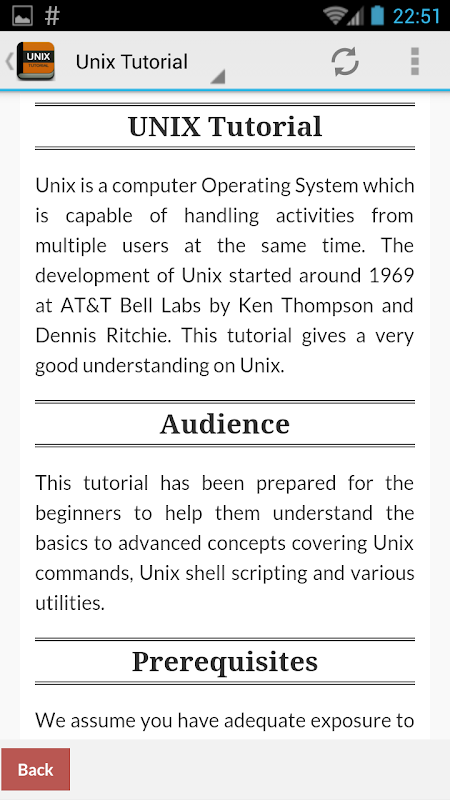 ที่ดีที่สุดและ Unix สอนที่สมบูรณ์ โปรแกรมนี้มีหลายสิบของบทเรียนที่จะเรียนรู้ระบบปฏิบัติการยูนิกซ์ตั้งแต่ขั้นพื้นฐาน บทเรียนเลยครับโดยไม่ต้องเชื่อมต่ออินเทอร์เน็ต นี่คือรายการของบทเรียนที่มีอยู่ในโปรแกรมนี้: