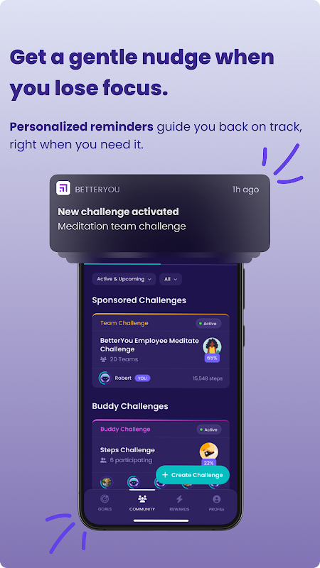 ความท้าทาย- คุณรู้หรือไม่ว่าการมีพันธมิตรที่รับผิดชอบสามารถเพิ่มอัตราความสำเร็จตามเป้าหมายของคุณได้ถึง 90%? ท้าทายเพื่อนในด้านต่างๆ เช่น การก้าวเท้าหรือการนอนหลับ และทั้งคู่จะได้รับรางวัลจากการบรรลุเป้าหมายของคุณ
