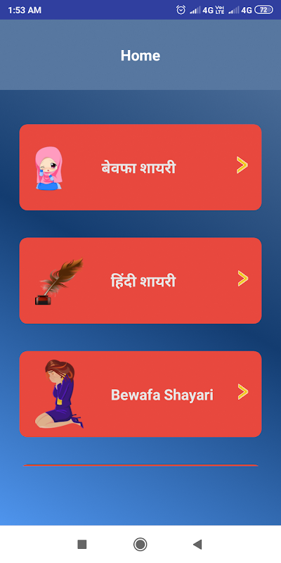 One of the best Shayari App of All time. This app contains largest collection of Bewafa Shayari, Hindi Shayari and Sad Shayari.
