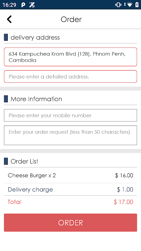 You can easily place an order in the store to deliver food.