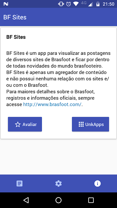 BF Sites é um app para visualizar as postagens de diversos sites de Brasfoot e ficar por dentro de todas novidades do mundo brasfooteiro.