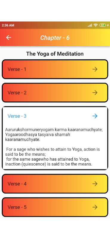 เริ่มใช้แอพที่น่าทึ่งนี้ด้วยอินเทอร์เฟซที่สวยงามและใช้งานง่ายซึ่งมีคำแปลของ Bhagwat Geeta เป็นภาษาอังกฤษอย่างสมบูรณ์ การค้นหาของคุณสิ้นสุดที่นี่ด้วยแอปนี้