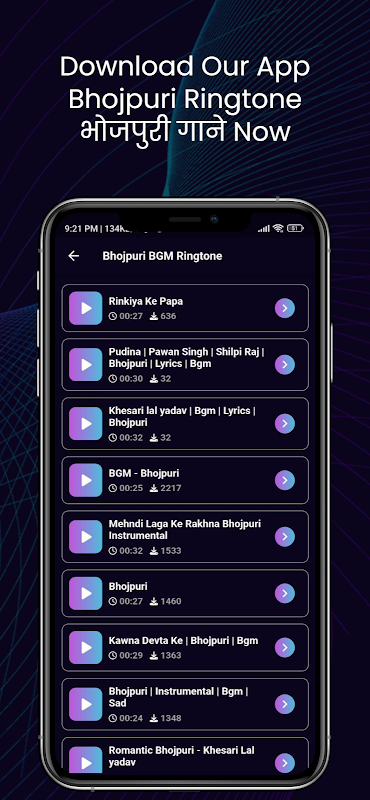 Once users find a ringtone they like, they can listen to a preview of it before downloading it to their device. The app also allows users to set the selected ringtone as their phone's default ringtone or assign it to specific contacts. Bhojpuri songs are loved by most of the people in india, Bhojpuri gana is the most entertaining source as hot bhojpuri is preferred by most of the people.