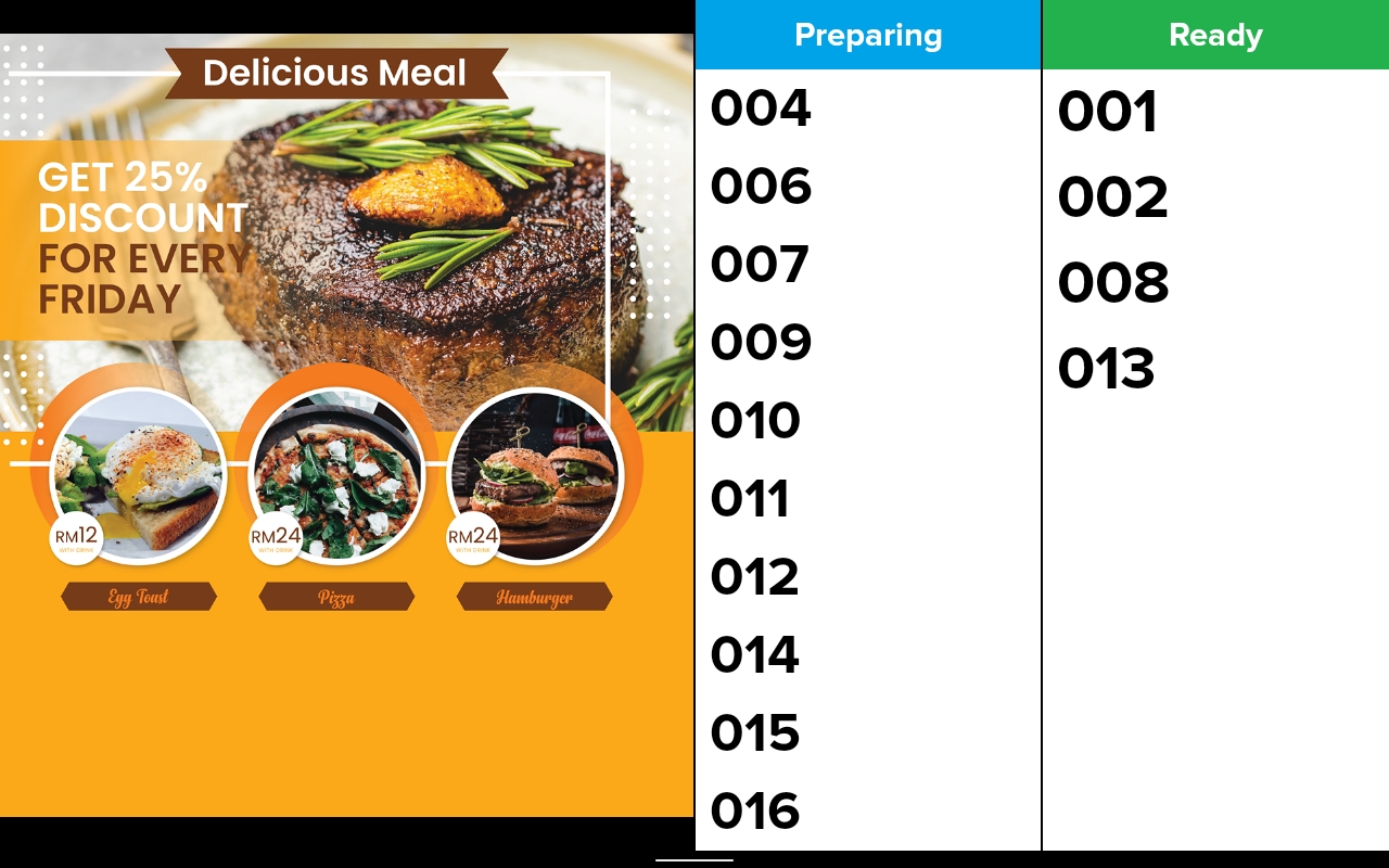 - คุณสามารถผสานรวมและเชื่อมต่อระบบ POS หรือระบบแสดงสินค้าในครัว (KDS) กับ CDS ได้อย่างราบรื่น และแสดงไปยังจอแสดงผลที่ลูกค้าต้องเผชิญ เพื่อให้ลูกค้าเห็นสถานะการสั่งซื้อสำหรับการรวบรวม/บริการด้วยตนเอง