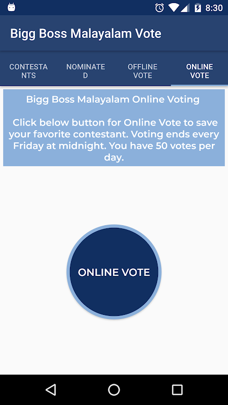 Bigg Boss Malayalam Vote made easy to vote your favorite Contestants.