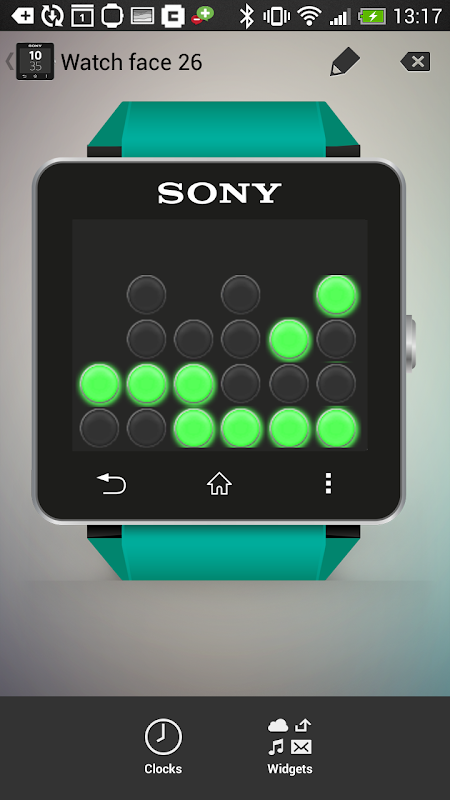 ทศนิยมรหัสไบนารี (BCD) ของ Sony SmartWatch 2 (SW2) เครื่องมือหน้าปัดนาฬิกา ทั้งขนาด 5x4 มาตรฐานการแสดงผลในแนวตั้งสไตล์ BCD และขนาด 5x3 เครื่องมือ sexagesimal แนวนอนรวม เหมาะสมสำหรับโหมดพลังงานต่ำและขนาด app เล็กรูปแบบทั้งอนุญาตให้มีการเพิ่มเติมเครื่องมือที่จะเพิ่ม ดู https://en.wikipedia.org/wiki/Binary_clock สำหรับคำแนะนำเกี่ยวกับวิธีการอ่านไฟ LED หรือดูแผนภาพที่แสดงข้างต้น