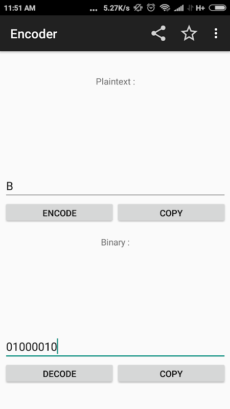 Here you can do conversion from simple text and encode it into a Binary series of 1's and 0's.
