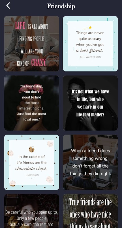 Text Font style, Text Align, Background(Pick Image from gallery/Add Color), TextSize, TextColor options for make your own Quotes, ✔️ Make Favourite & Set as wallpaper You can make favourite and set quotes as wallpaper, ✔️ Intelligent Options View, Share, WhatsApp, Favourite, Set as Wallpaper options for Image Quotes and Favourite, WhatsApp, Share, Copy options for Text Quotes.