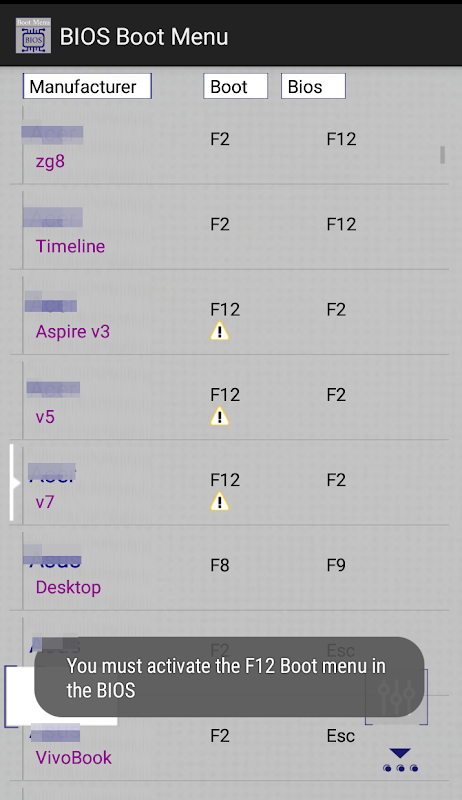 แอพนี้มีรายการของ BIOS และปุ่มตัวเลือก BOOT ทั่วไปตามแบรนด์และผู้ผลิต