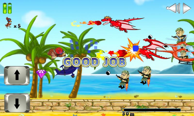 Helping the bird beat a variety of cute enemies and fly further!
