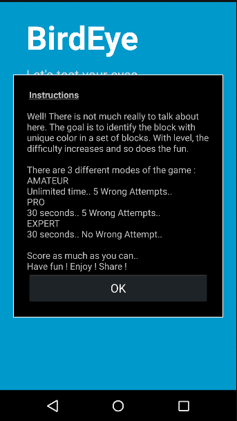 BirdEye เป็นเกมที่ชาญฉลาด ชาญฉลาด และปรับตัวได้ โดยมีรูปแบบการเล่นที่เรียบง่าย ลองท้าทายคนอื่นๆ ดูสิ เป็นเกมที่ปรับตัวได้ซึ่งมอบความบันเทิงที่สมบูรณ์แบบและทดสอบสายตาของคุณไปพร้อมๆ กัน