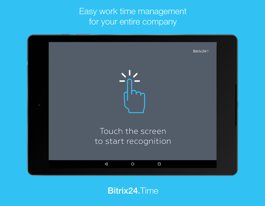 Мы в Битрикс24 предлагаем другой способ. Вам понадобится самый обычный планшет и приложение Bitrix24Time. И все! Приложение умеет работать с распознаванием лиц, узнает по лицу сотрудника, отличает живого человека от фотографии по улыбке, фиксирует начало и завершение рабочего дня, а также перерывы.