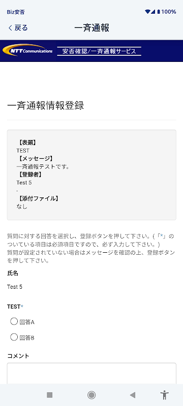 แอปพลิเคชัน Android นี้เป็นส่วนหนึ่งของโซลูชันการป้องกันภัยพิบัติ "Biz Safety Check/Mass Notification" (ต่อไปนี้จะเรียกว่า "Biz Safety") สำหรับธุรกิจและองค์กร ช่วยให้ผู้ใช้สามารถตอบสนองต่อการตรวจสอบความปลอดภัยและการแจ้งเตือนจำนวนมากได้อย่างรวดเร็วในช่วงที่เกิดภัยพิบัติ