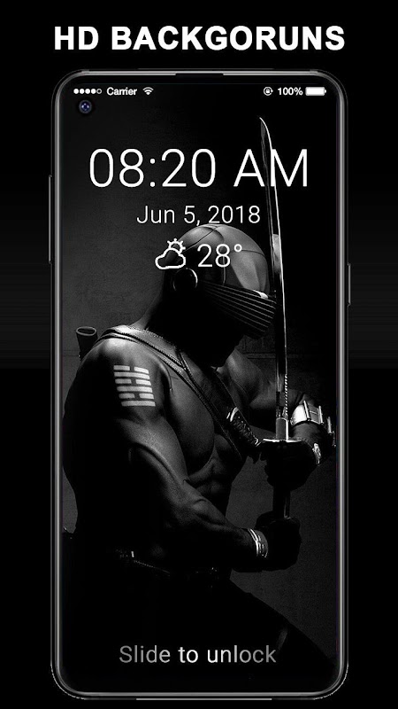 หน้าจอปลดล็อควอลเปเปอร์ & สไลด์ 4K สีดำเป็นแอพล็อคเกอร์หน้าจอที่ปลอดภัยอย่างยิ่งผ่านรหัสผ่าน PIN หรือรหัสผ่านเพื่อเพิ่มความปลอดภัยให้กับโทรศัพท์ของคุณ