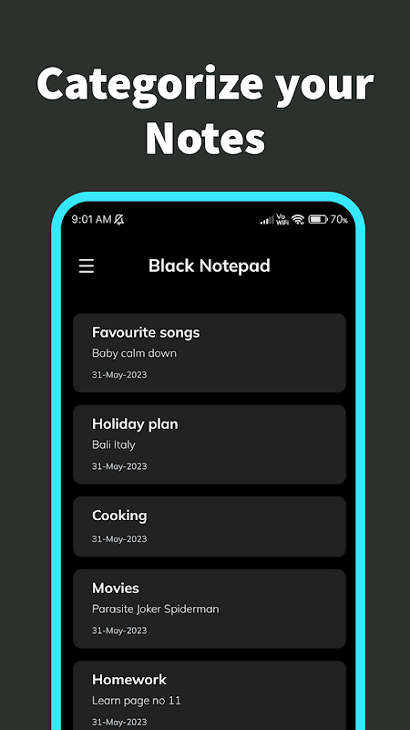 Black Notepad เป็นแอพโน้ตธีมสีดำ มันเป็นแอพโน้ตที่ดีที่มีการล็อค