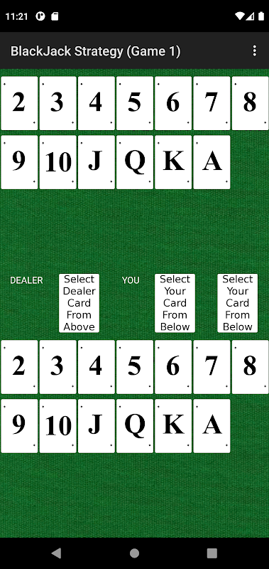 แอปพลิเคชั่นตัวช่วย BlackJack ที่ยอดเยี่ยมสำหรับผู้เริ่มต้น รู้ทันทีว่าจะตี ยืน ดับเบิ้ลดาวน์ หรือแยกระหว่างเกมแบล็คแจ็ค คุณจะเลือกไพ่ที่หงายของเจ้ามือและไพ่ในมือของคุณ แอปพลิเคชั่นจะบอกวิธีการเล่นของคุณอย่างรวดเร็ว