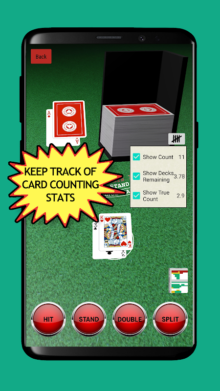 ฝึกฝนการนับไพ่อย่างมีประสิทธิภาพขณะเล่นแบล็คแจ็ค คุณสมบัติของแอปนี้ได้รับการออกแบบมาเพื่อให้คุณเรียนรู้ที่จะนับไพ่อย่างต่อเนื่องและแปลงเป็นจำนวนจริงได้อย่างง่ายดายโดยอิงจากจำนวนสำรับไพ่ที่เหลืออยู่ในสำรับ