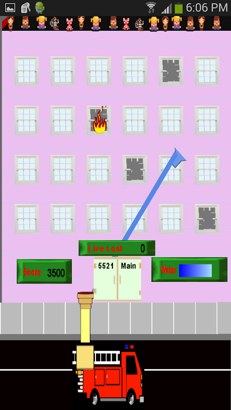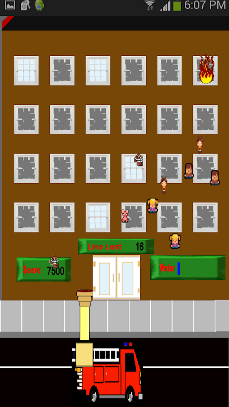 In this fast paced game, the player must tap on fires to put them out. Sometimes you must tap on fire multiple times to put it out but will still receive points every time you hit the fire with water. As your water starts to run out, the building tenants will start to jump off the building, so be quick to save them all.