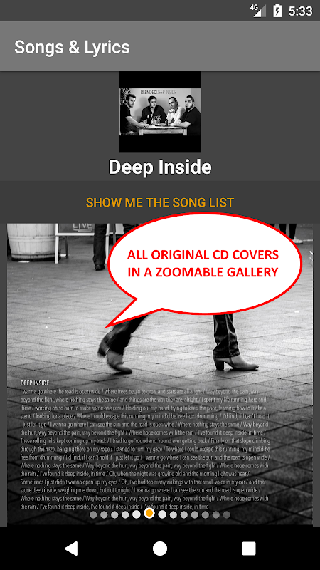You will find the original cover and booklet for each album and singing along to the songs has never been easier as lyrics are displayed automatically when a song is selected.