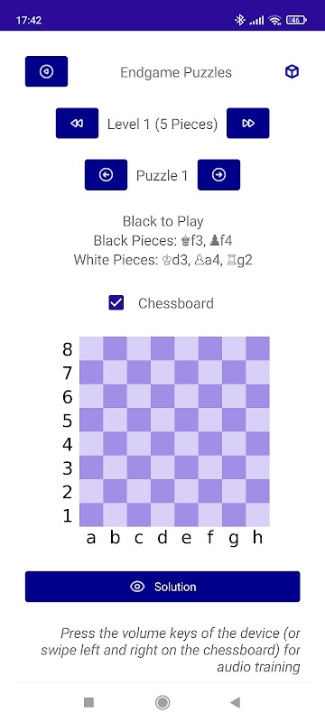 กดปุ่มปรับระดับเสียงบนอุปกรณ์ของคุณ (หรือปัดไปทางซ้ายและขวาบนกระดานหมากรุก) เพื่อฟังคำอธิบายปริศนา ปุ่มลดระดับเสียง (หรือปัดไปทางซ้าย) อธิบายประโยคปริศนาทีละประโยค ปุ่มเพิ่มระดับเสียง (หรือปัดไปทางขวา) เริ่มจากด้านบน
