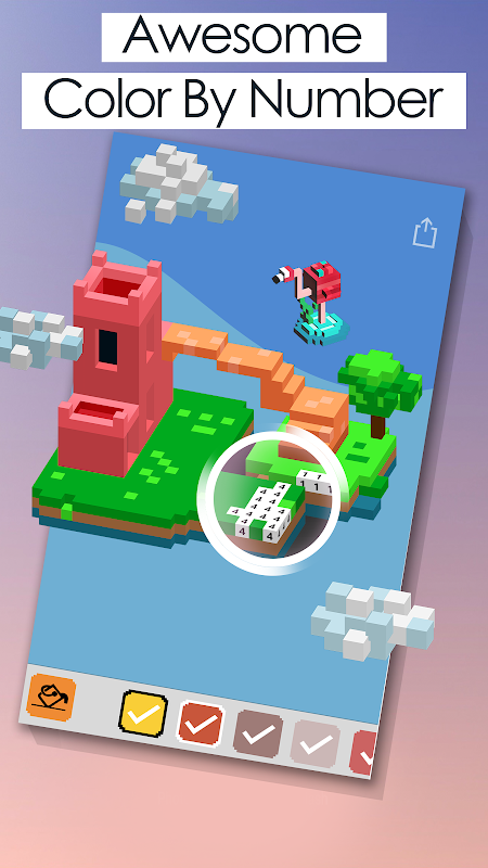 Block Art creates stunning 3D version of famous objects in amazing colors. All combined brings both abstract and detail voxel of things for number coloring game. The coloring game facilitated by minimal design but perfect look and feel.