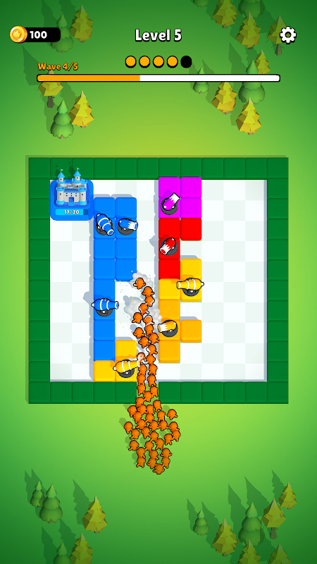 ลากวางและรวมบล็อกเพื่อสร้างเขาวงกตและปกป้องปราสาทของคุณจากศัตรู!
